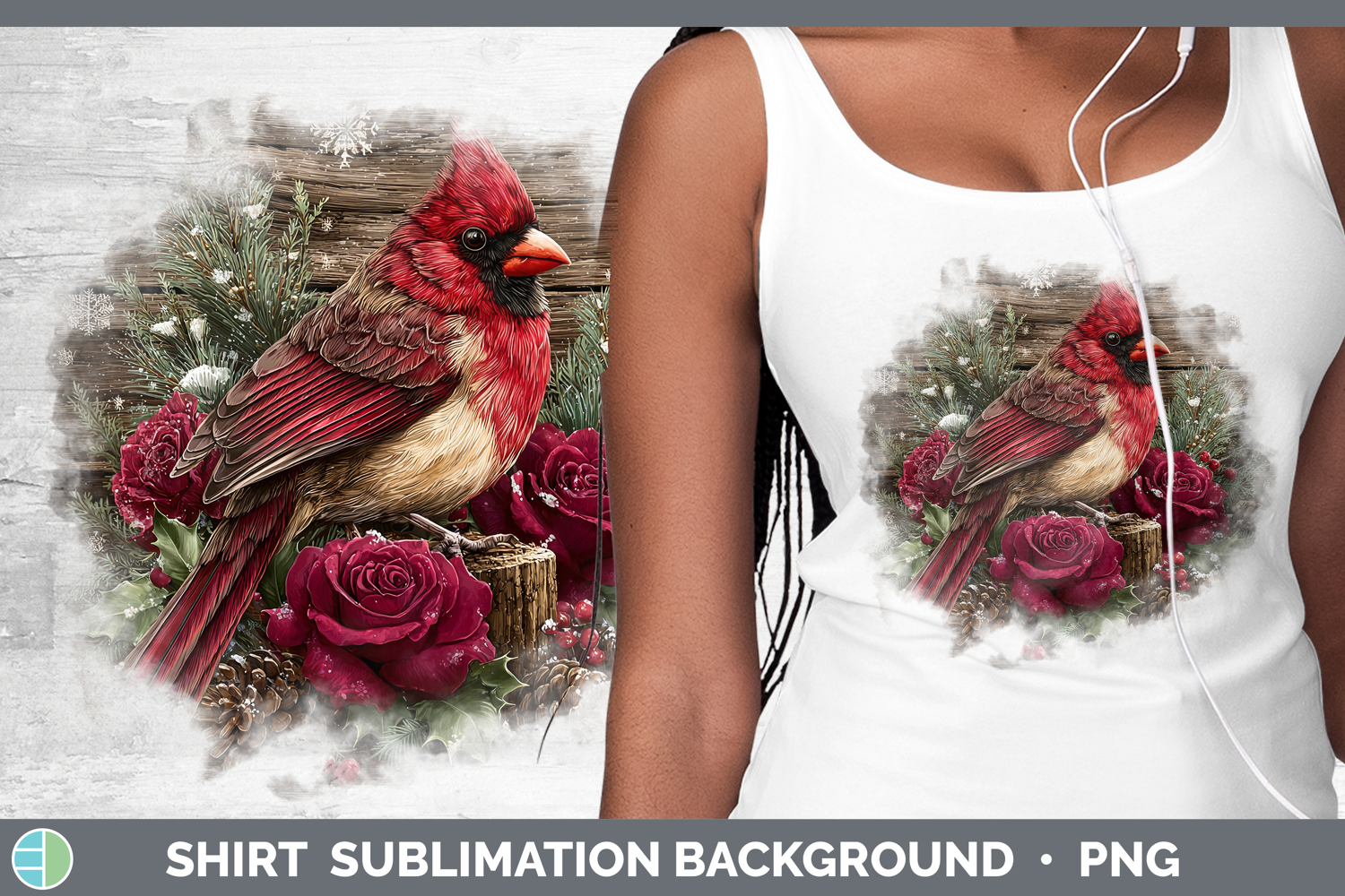 Cardinal Birds 01 Rustic Christmas Shirt Sublimation Design
