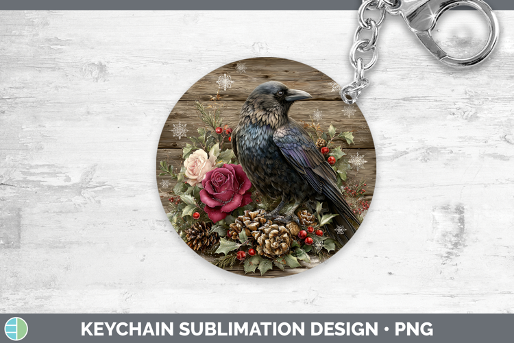 Crow Birds 01 Rustic Christmas Keychain Sublimation Design