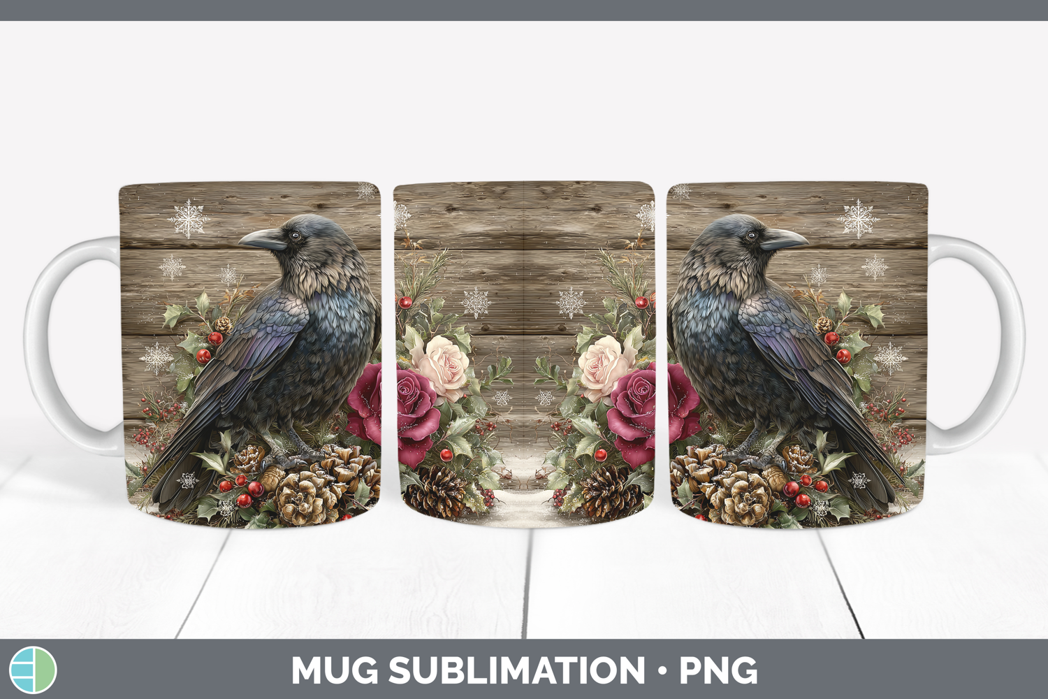 Similar Design Products to Crow Birds 01 Rustic Christmas Mug Wrap Sublimation Design