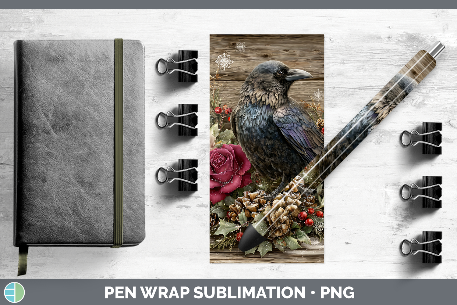 Crow Birds 01 Rustic Christmas Pen Wrap Sublimation Design