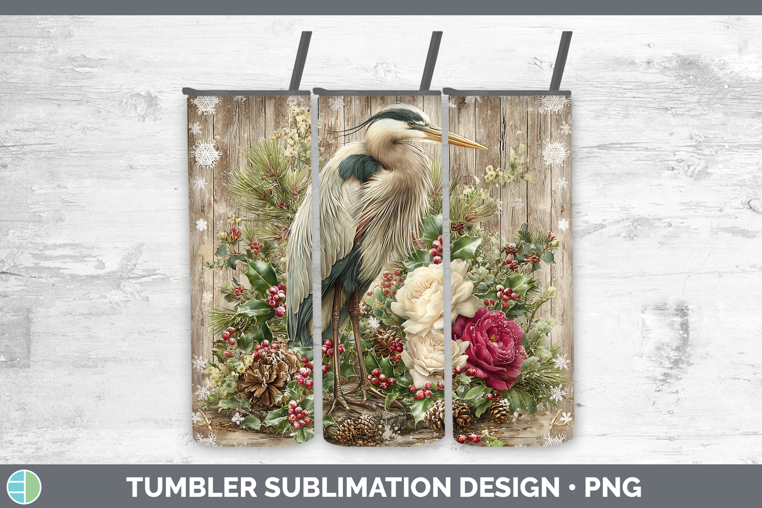 Similar Design Products to Great Blue Heron Birds 01 Rustic Christmas Tumbler Sublimati