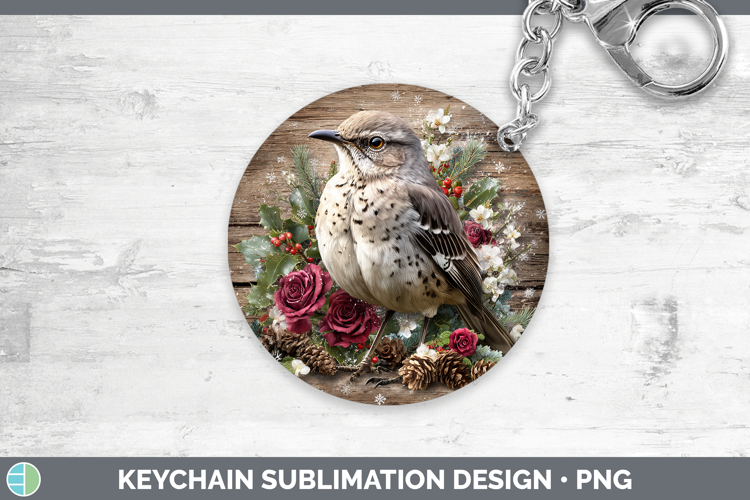 Mockingbird Birds 01 Rustic Christmas Keychain Sublimation D