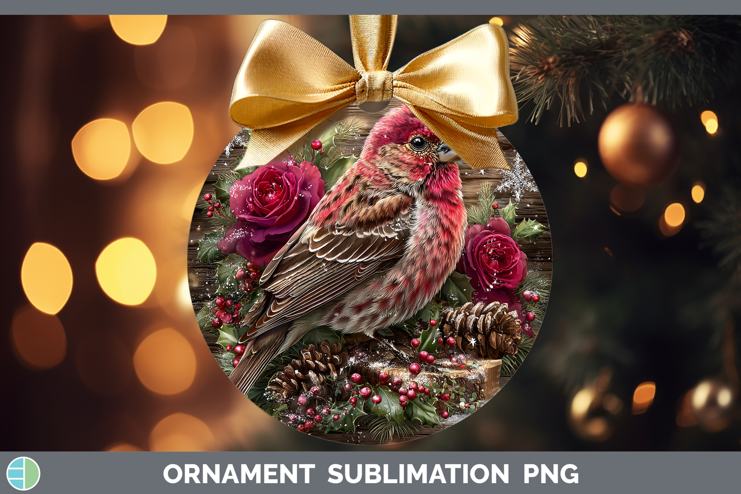 Pine Grosbeak Birds 01 Rustic Christmas Ornament Sublimation