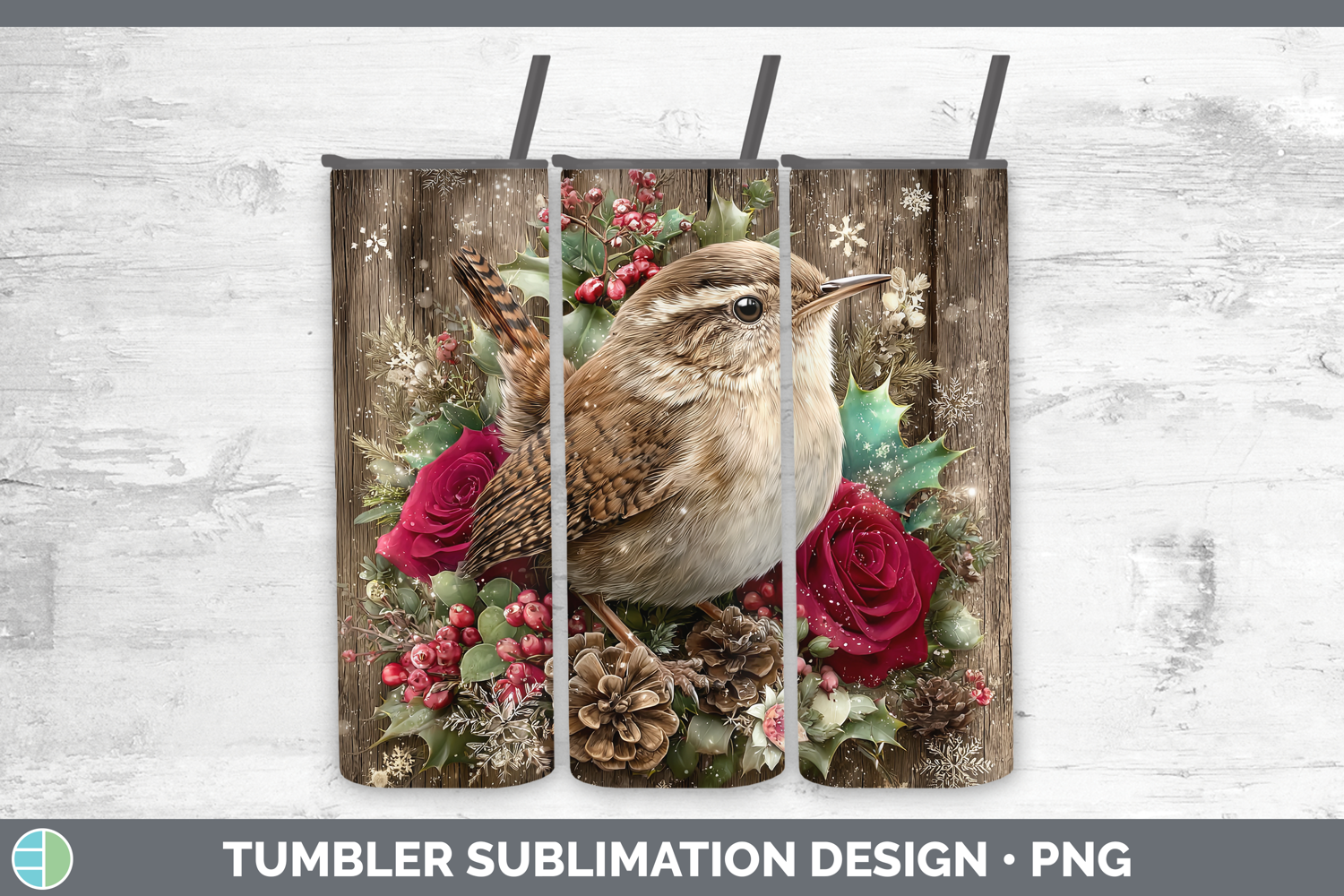 Similar Design Products to Wren Birds 01 Rustic Christmas Tumbler Sublimation Design