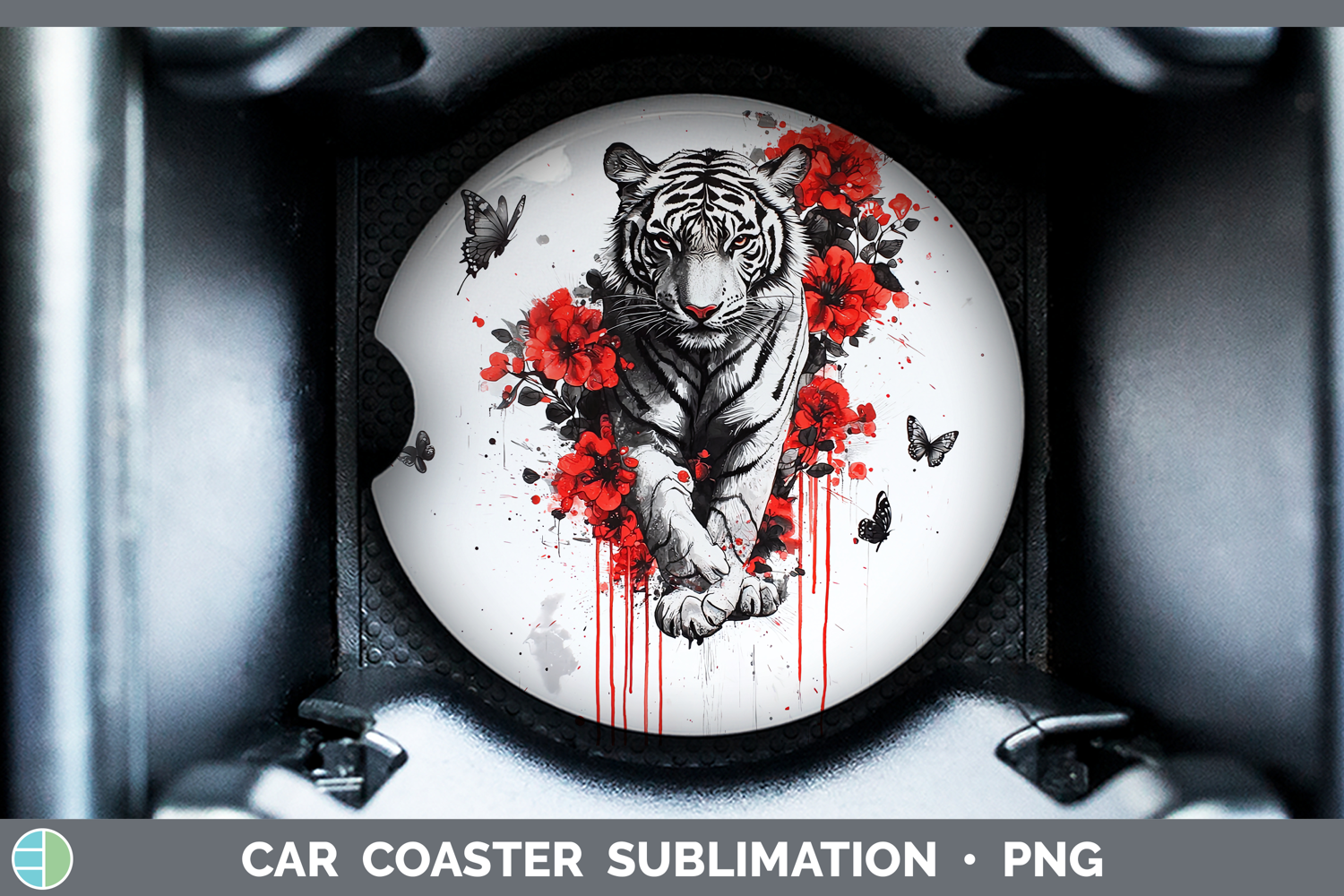 Tiger Animals Red Drips Car Coaster Sublimation Design