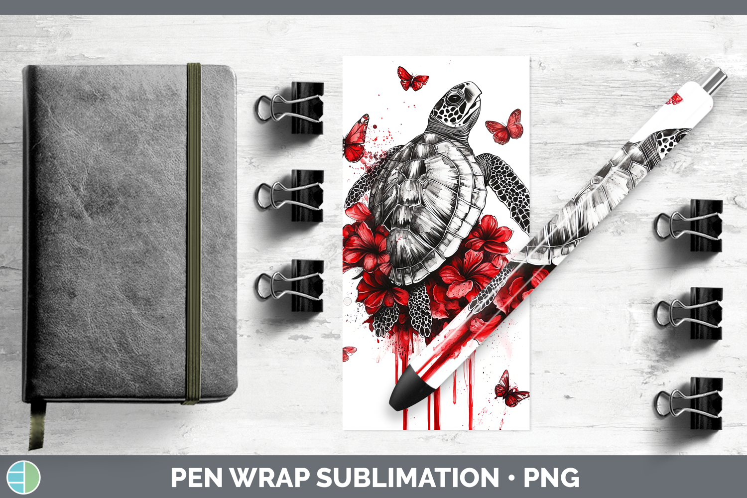 Sea Turtle Animals Red Drips Pen Wrap Sublimation Design