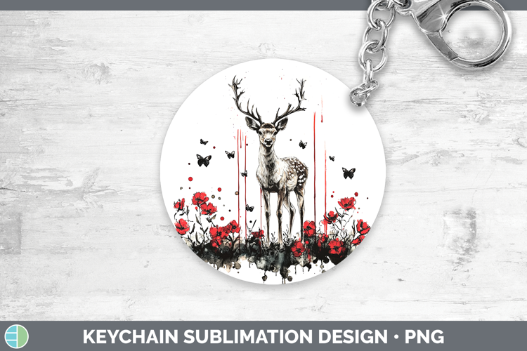Deer Animals Red Drips Keychain Sublimation Design