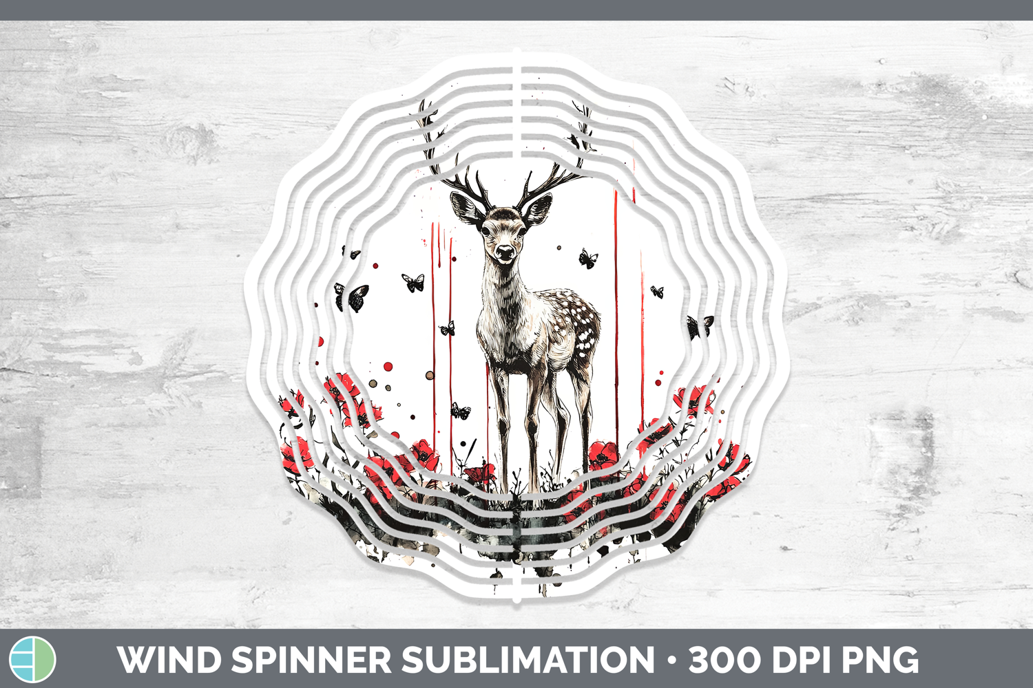 Deer Animals Red Drips Wind Spinner Sublimation Design