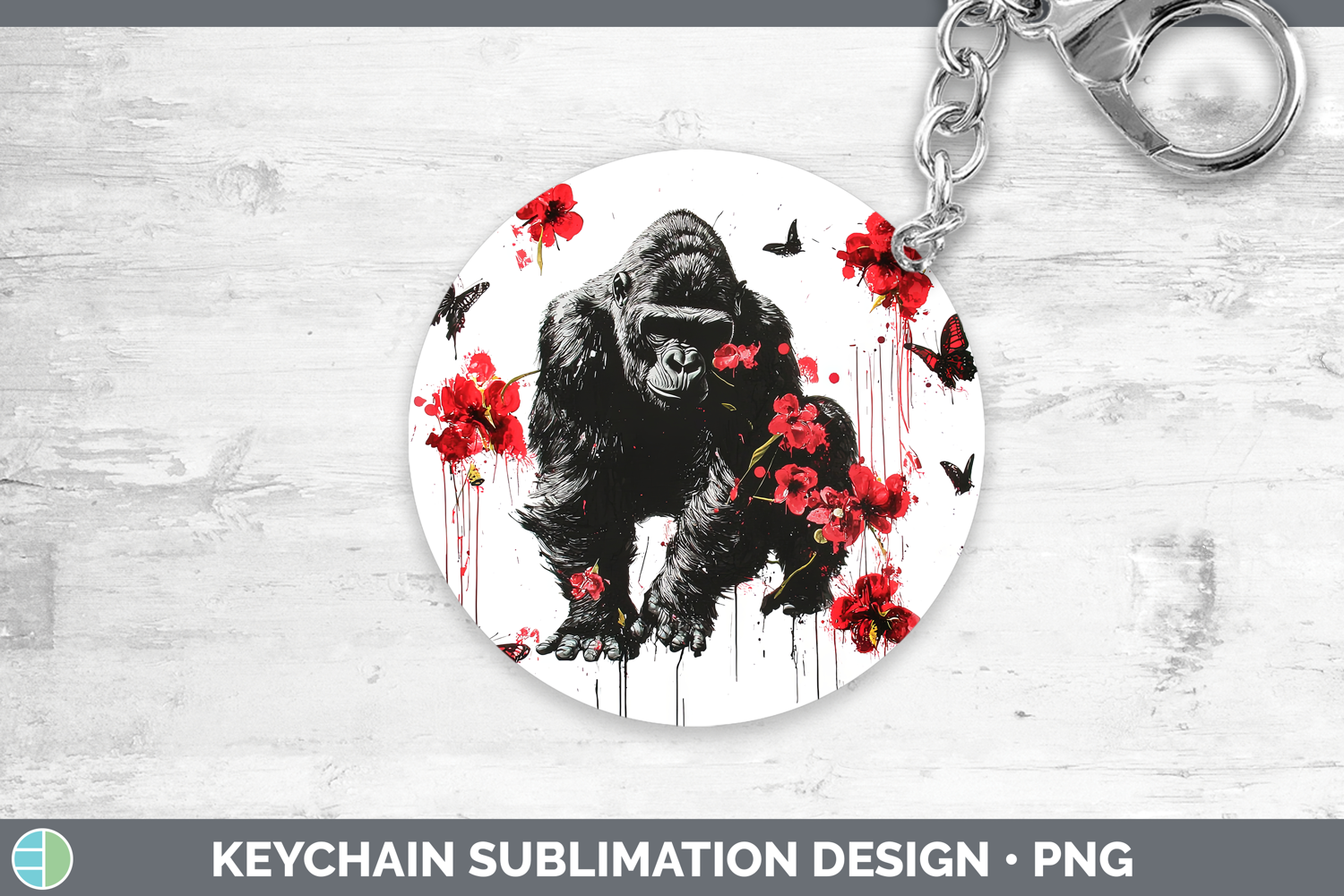 Gorilla Animals Red Drips Keychain Sublimation Design