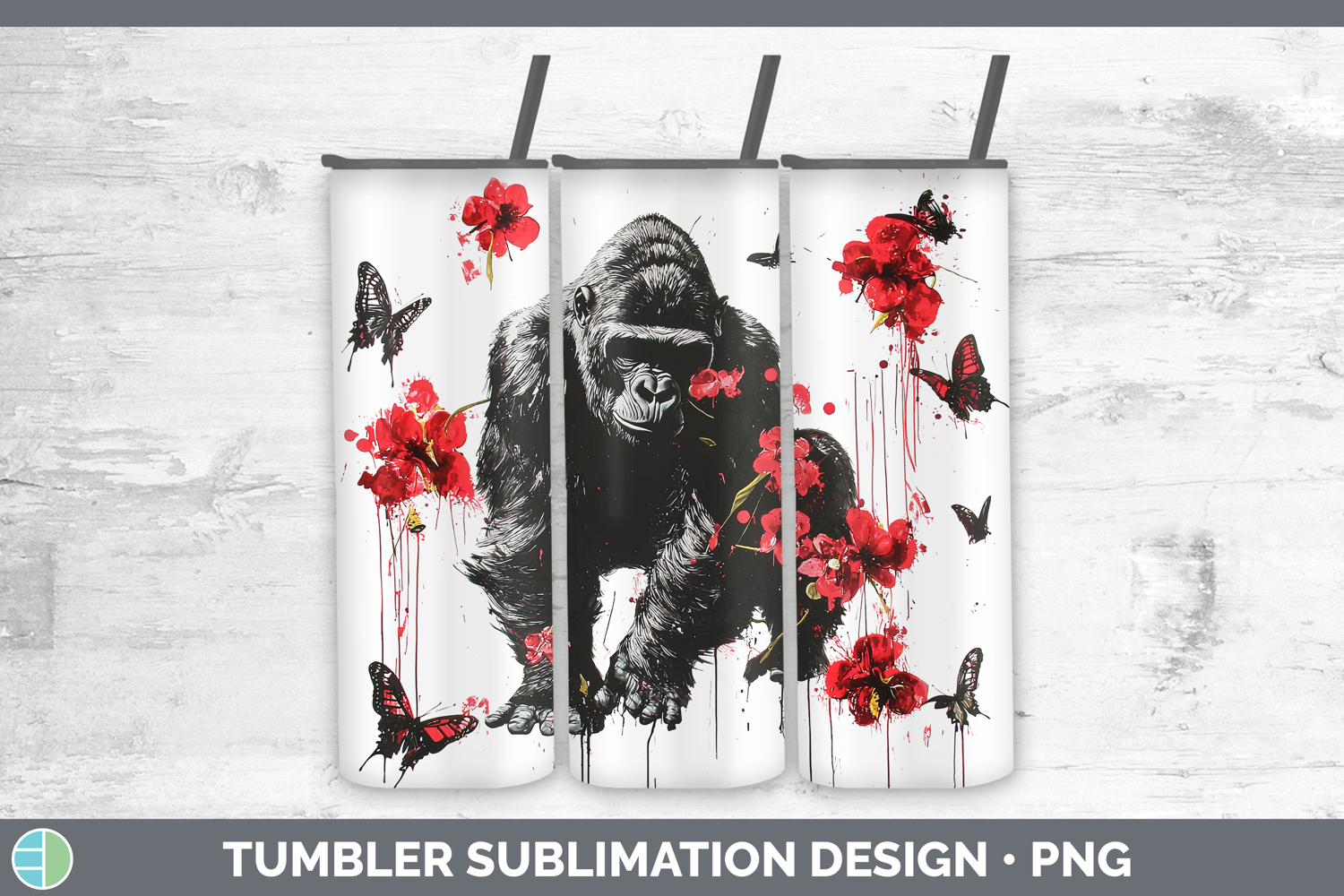 Similar Design Products to Gorilla Animals Red Drips Tumbler Sublimation Design