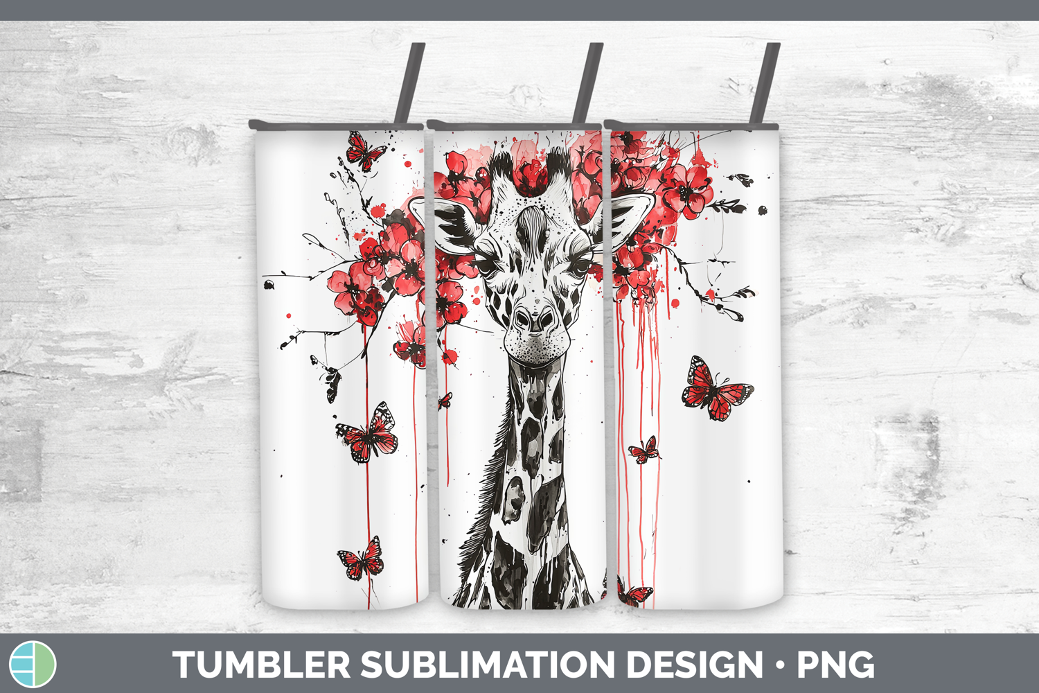Giraffe Animals Red Drips Tumbler Sublimation Design