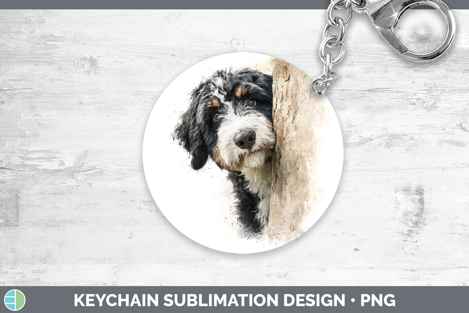 Bernedoodle Dogs 04 Tree Peek Keychain Sublimation Design