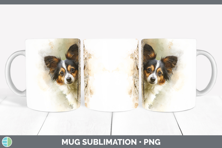 Papillon Dogs 04 Tree Peek Mug Wrap Sublimation Design