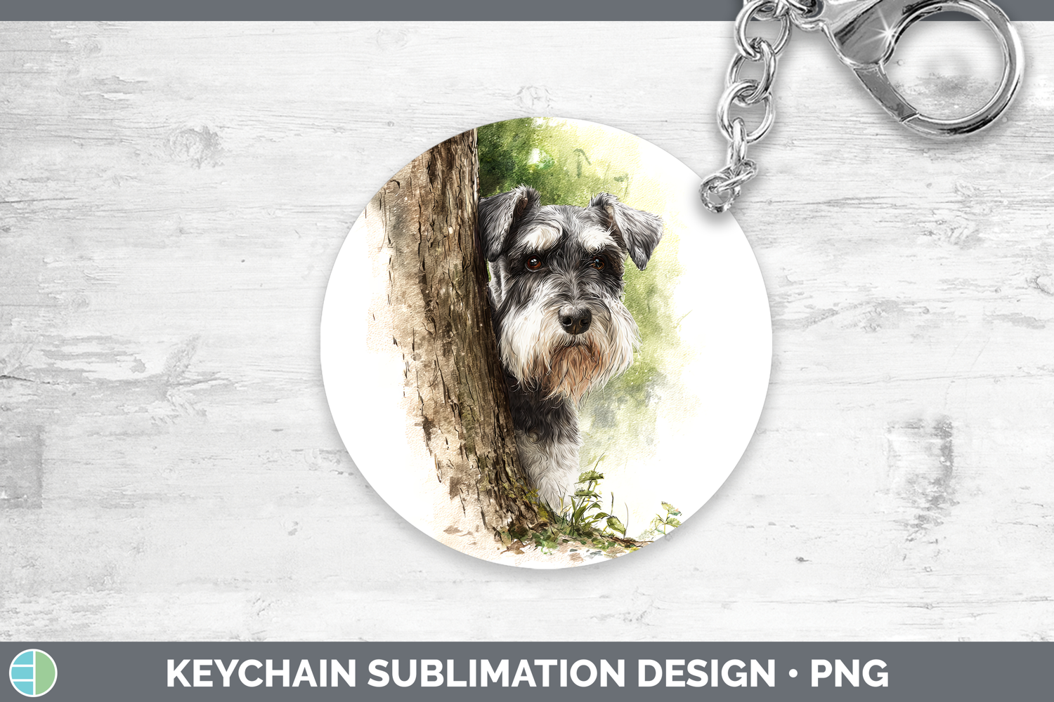 Standard Schnauzer Dogs 04 Tree Peek Keychain Sublimation De