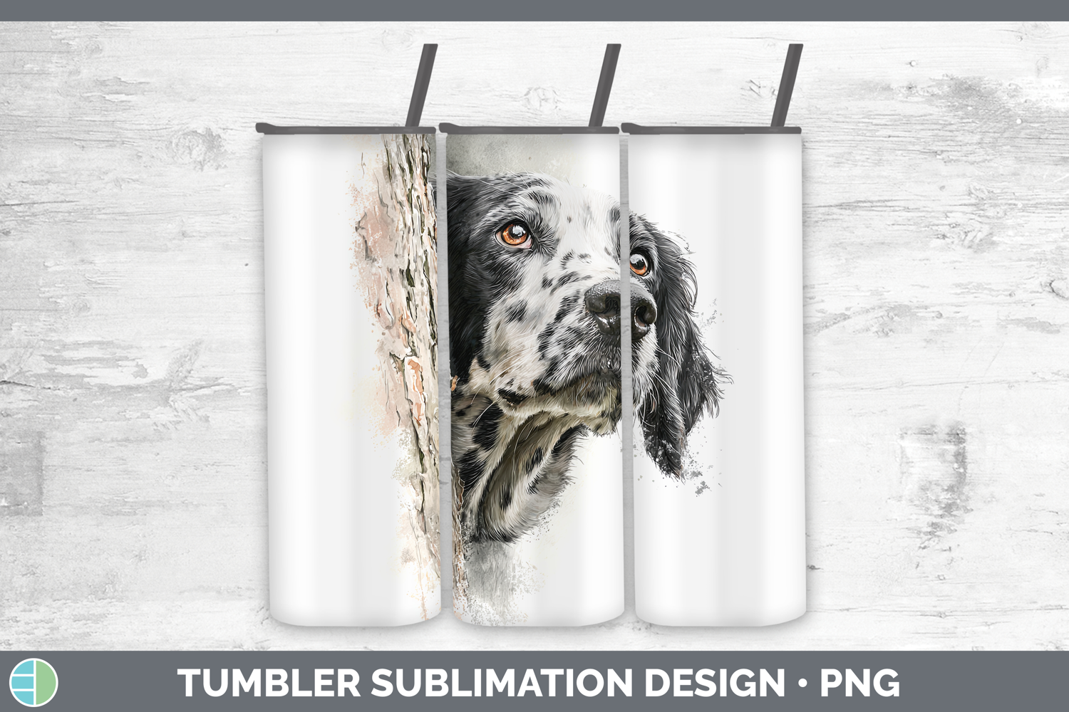 Similar Design Products to English Setter Black and White Dogs 05 Tree Peek Tumbler Sub