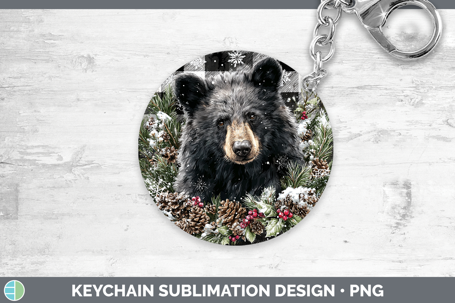 Bear Animals Checker Christmas Keychain Sublimation Design