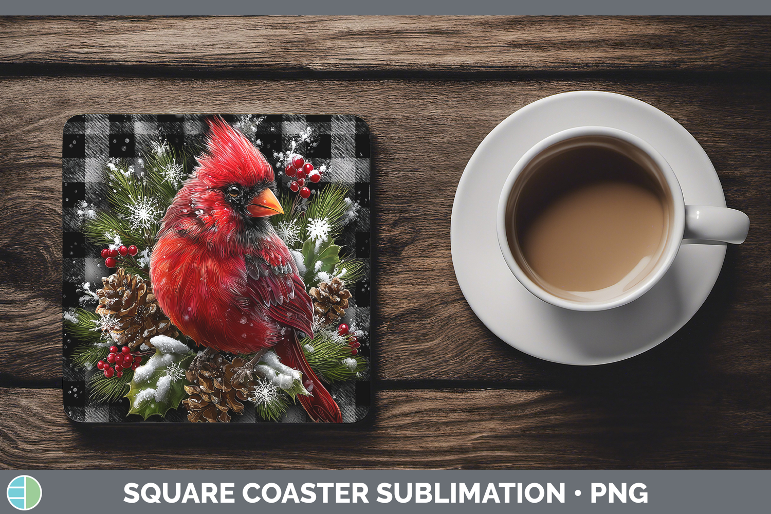 Cardinal Animals Checker Christmas Square Coaster Sublimatio
