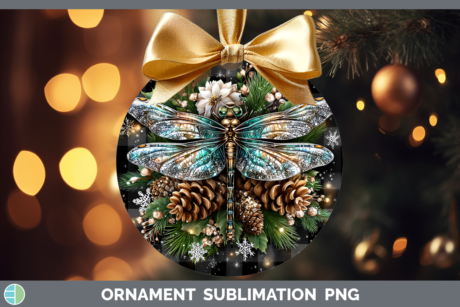 Dragonfly Animals Checker Christmas Ornament Sublimation Des
