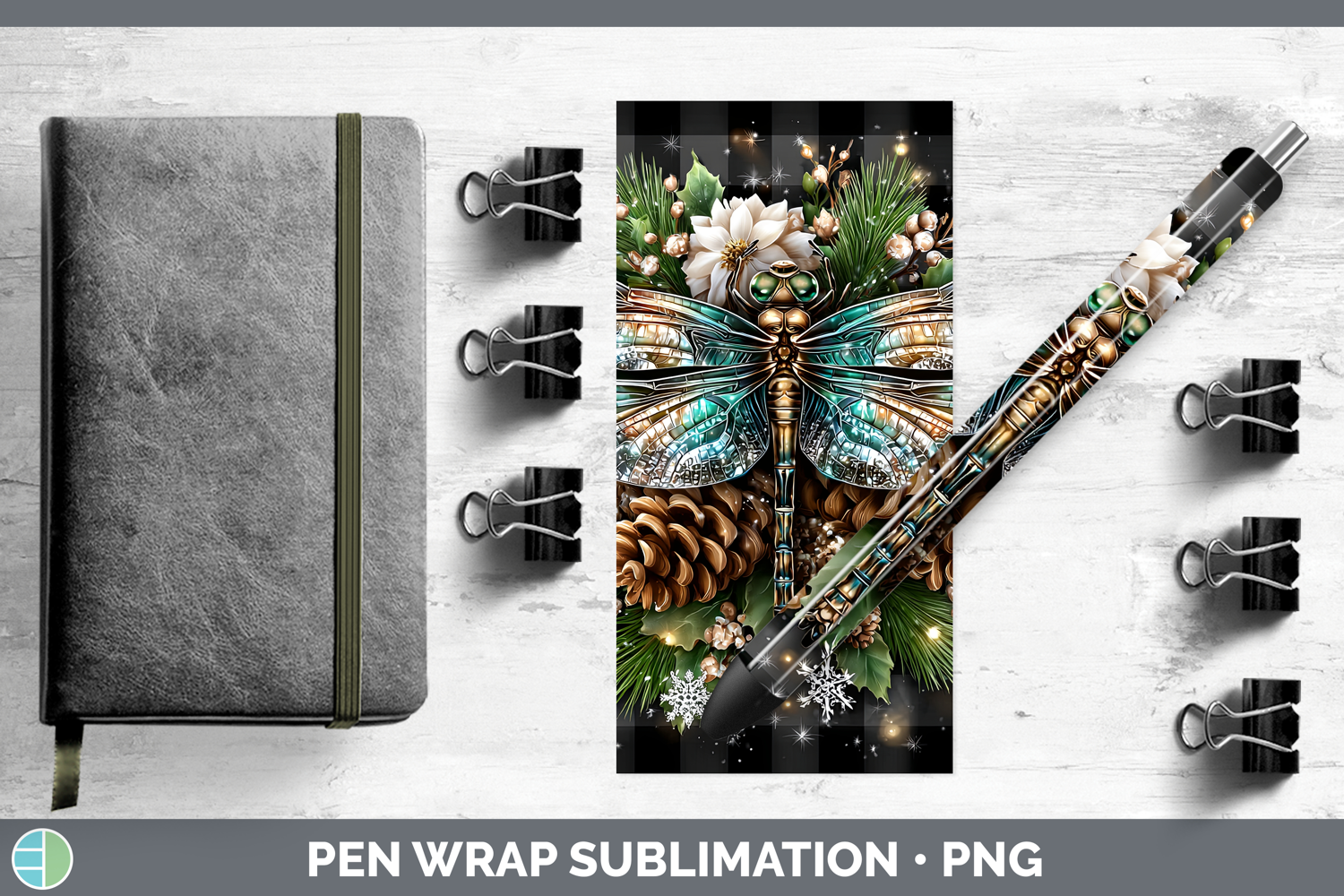Dragonfly Animals Checker Christmas Pen Wrap Sublimation Des