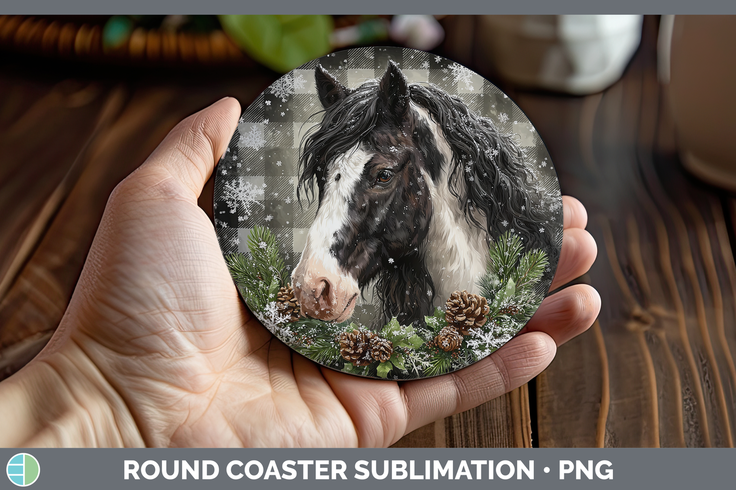 Horse Animals Checker Christmas Round Coaster Sublimation De