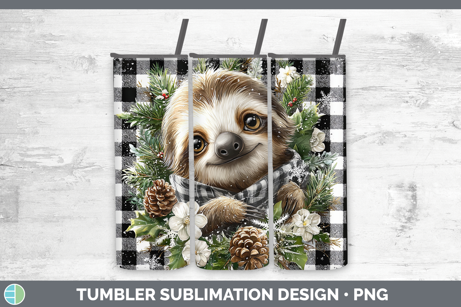 Sloth Animals Checker Christmas Tumbler Sublimation Design