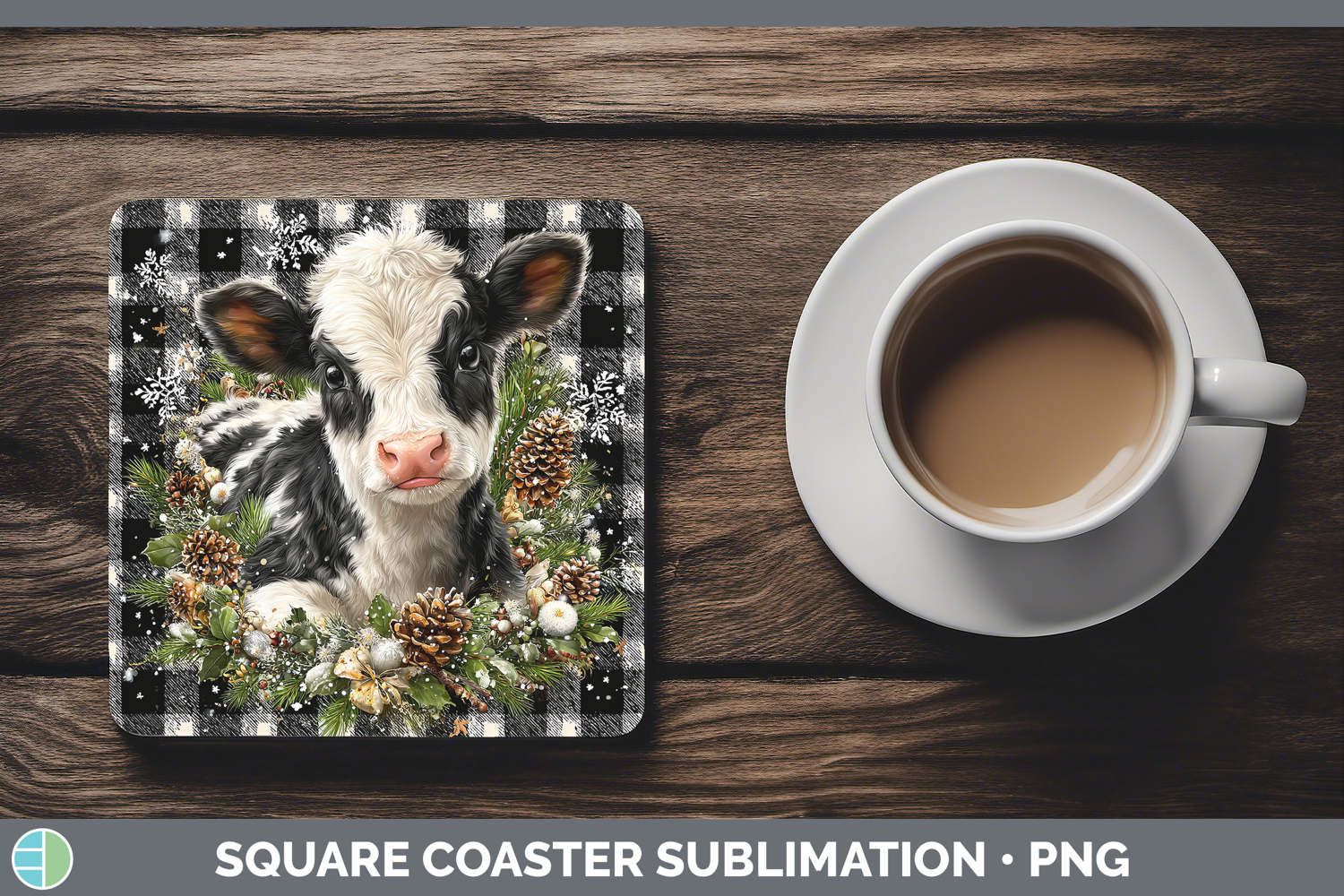 Similar Design Products to Cow Animals Checker Christmas Square Coaster Sublimation Des