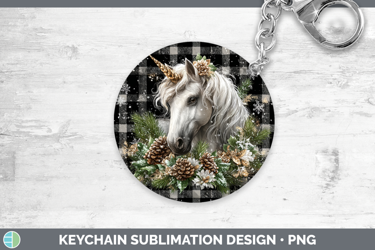 Unicorn Animals Checker Christmas Keychain Sublimation Desig