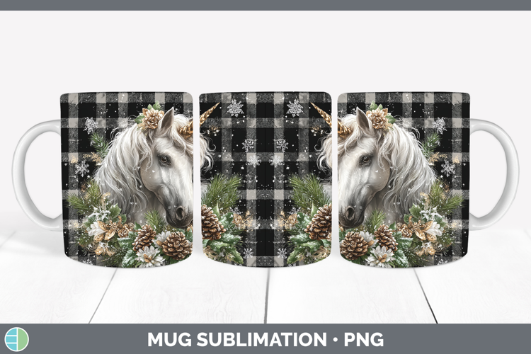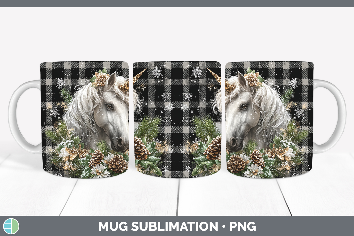 Unicorn Animals Checker Christmas Mug Wrap Sublimation Desig