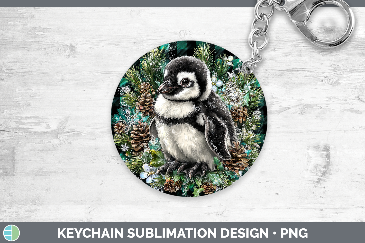 Penguin Animals Checker Christmas Keychain Sublimation Desig