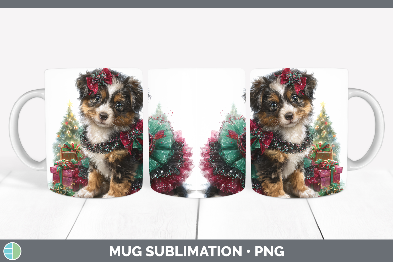 Australian Shepherd Dogs 02 Cute Christmas Mug Wrap Sublimat