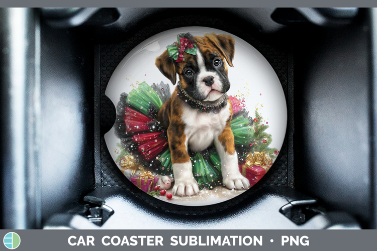 Boxer Dogs 02 Cute Christmas Car Coaster Sublimation Design