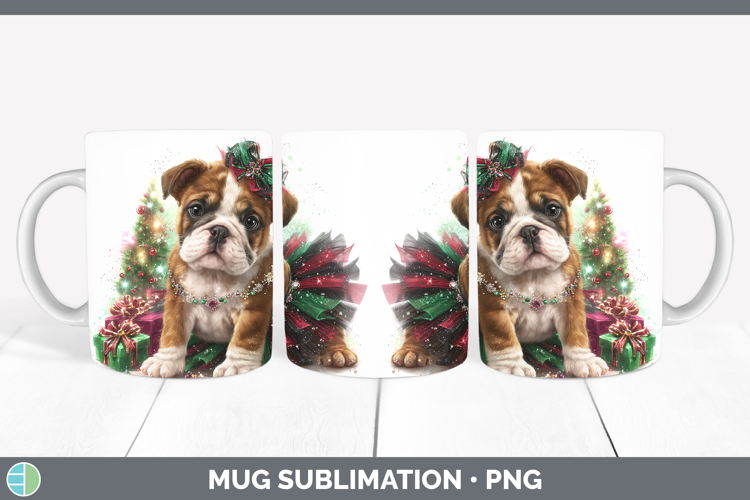Bulldog Dogs 02 Cute Christmas Mug Wrap Sublimation Design