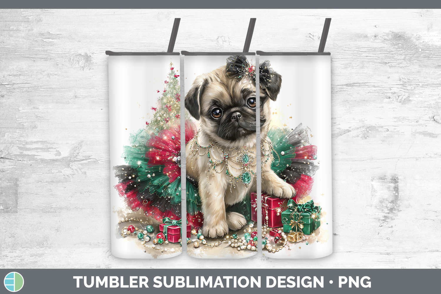 Pug Dogs 02 Cute Christmas Tumbler Sublimation Design