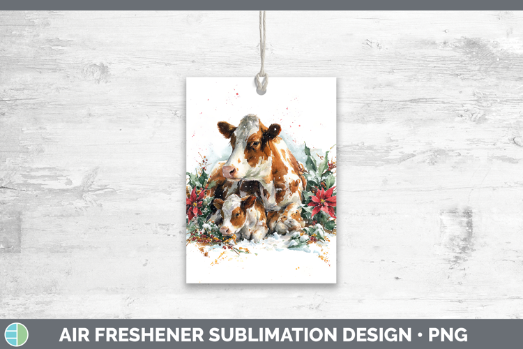 Cow Farm Christmas Poinsettia Air Freshener Sublimation Desi