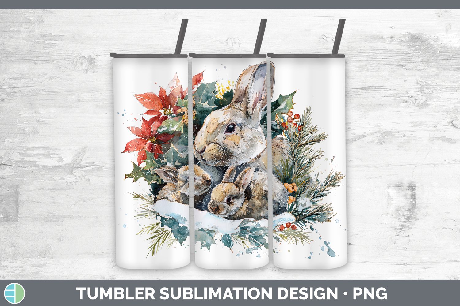 Bunny Farm Christmas Poinsettia Tumbler Sublimation Design