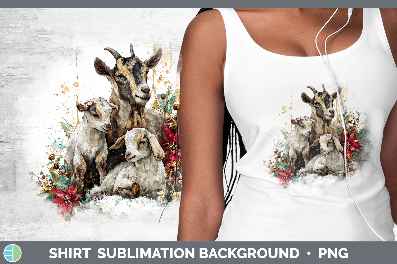 Goat Farm Christmas Poinsettia Shirt Sublimation Design