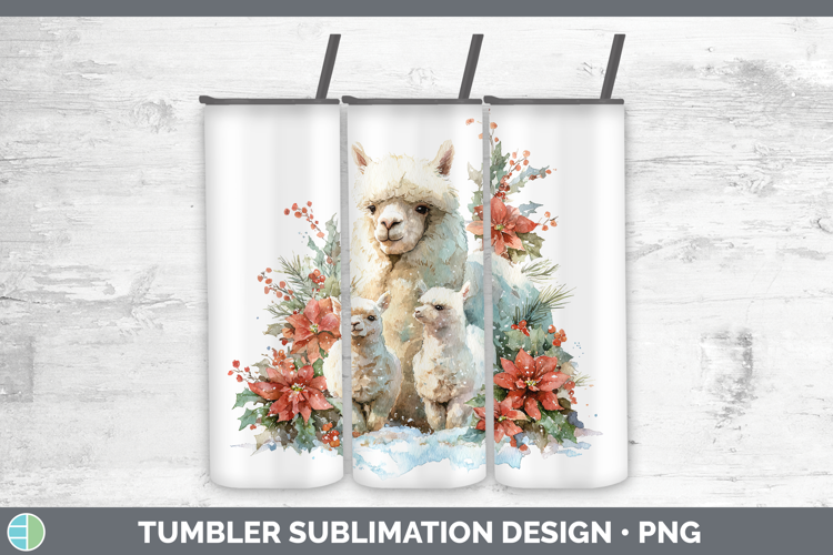 Alpaca Farm Christmas Poinsettia Tumbler Sublimation Design