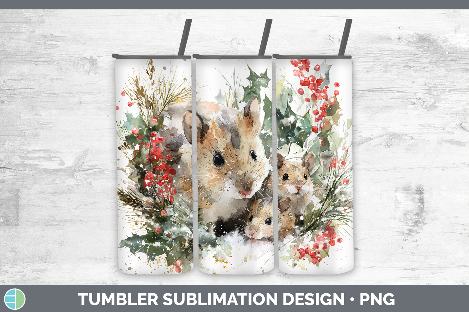 Mouse Farm Christmas Poinsettia Tumbler Sublimation Design