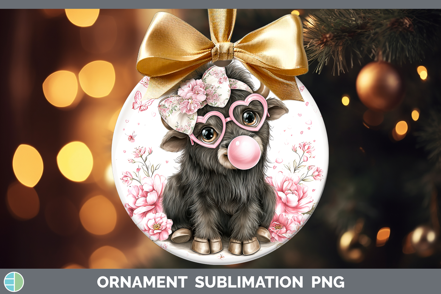 Similar Design Products to Musk Ox Woodland Pink Bubble Gum Ornament Sublimation Design