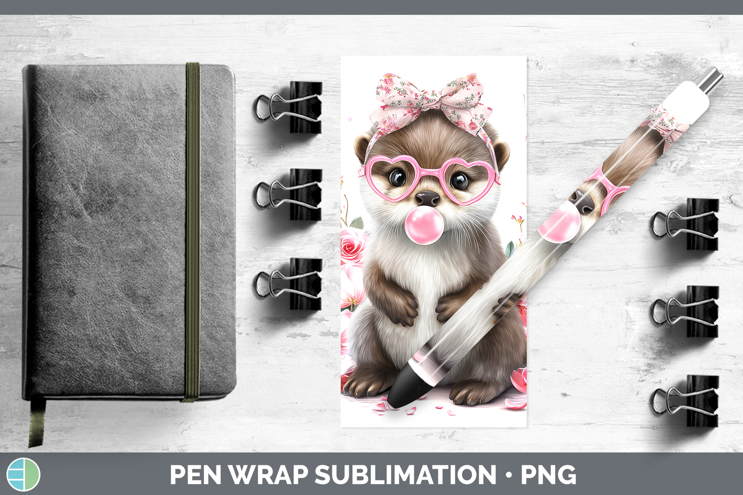 Otter Woodland Pink Bubble Gum Pen Wrap Sublimation Design