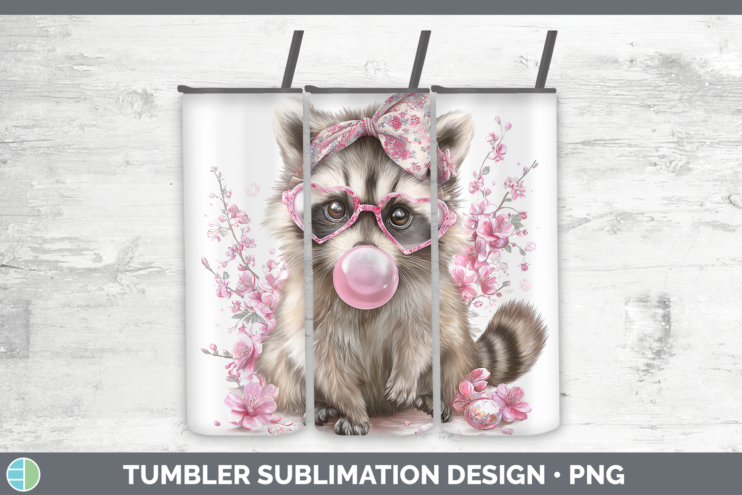 Raccoon Woodland Pink Bubble Gum Tumbler Sublimation Design