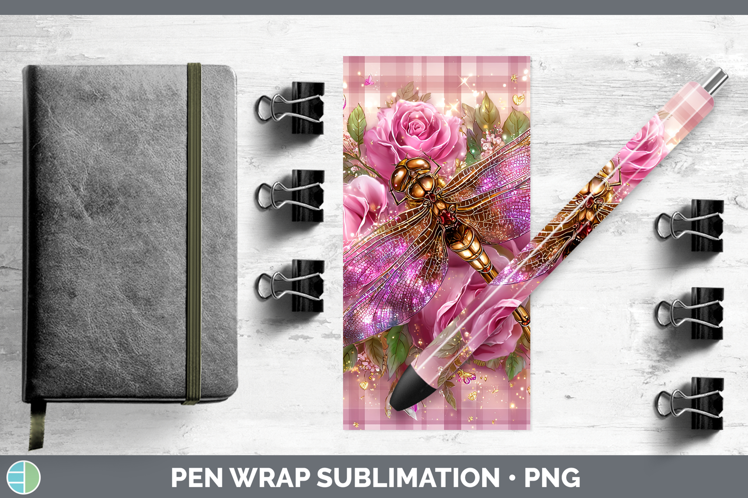 Dragonfly Animals Checker Valentine Pen Wrap Sublimation Des