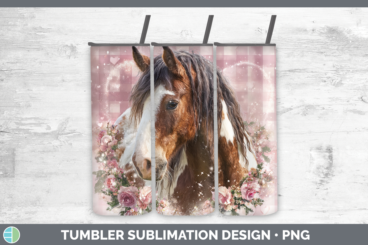 Horse Animals Checker Valentine Tumbler Sublimation Design