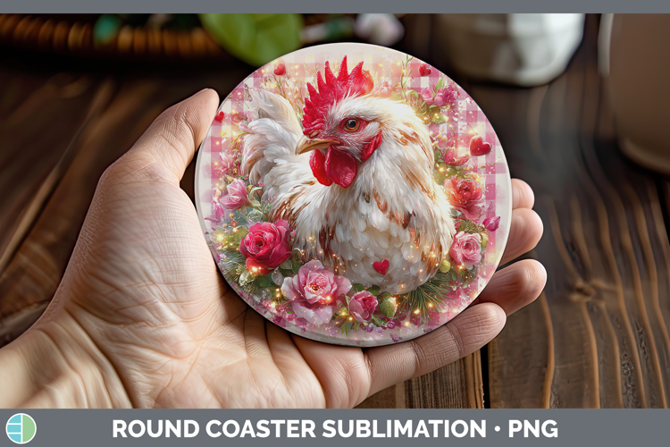 Chicken Animals Checker Valentine Round Coaster Sublimation