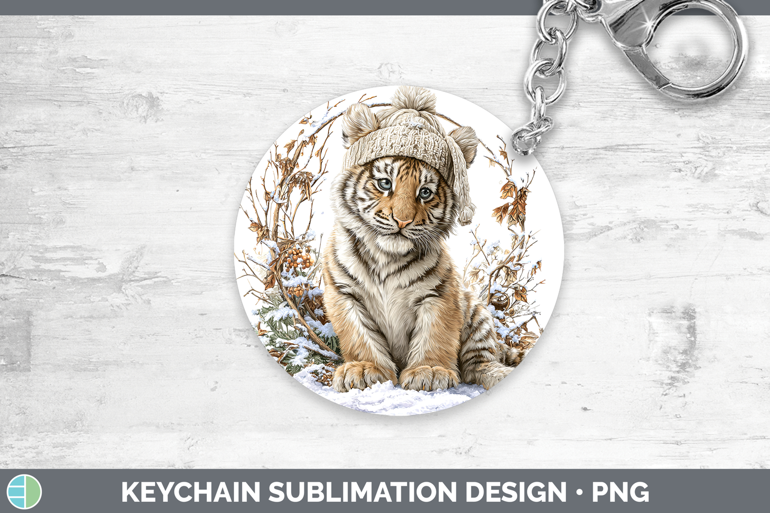 Tiger Animals Winter Knit Hat Keychain Sublimation Design