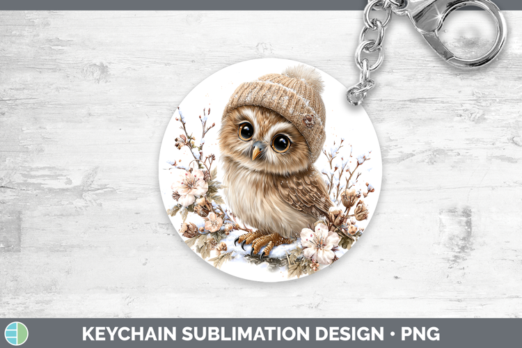 Owl Animals Winter Knit Hat Keychain Sublimation Design