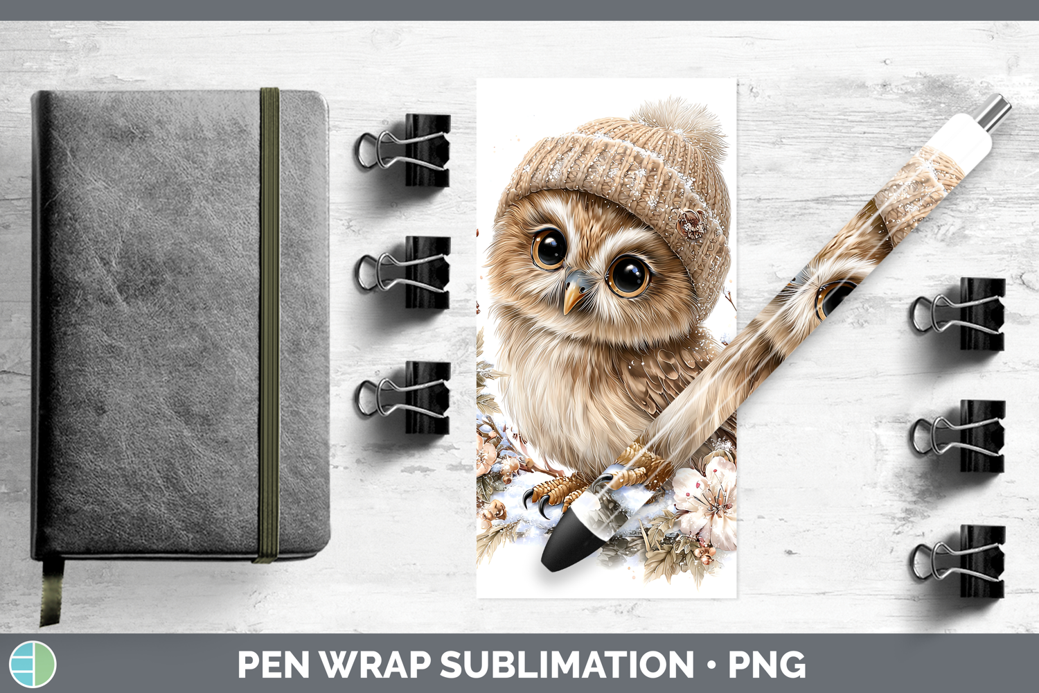 Owl Animals Winter Knit Hat Pen Wrap Sublimation Design