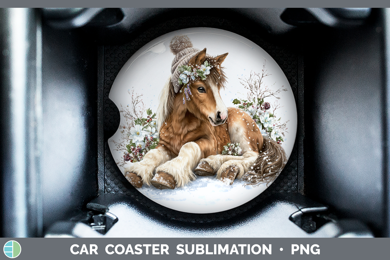 Horse Animals Winter Knit Hat Car Coaster Sublimation Design