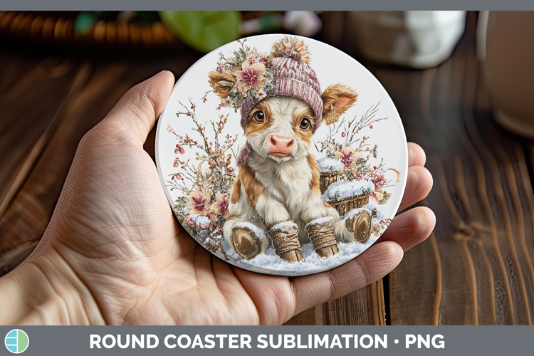 Cow Animals Winter Knit Hat Round Coaster Sublimation Design