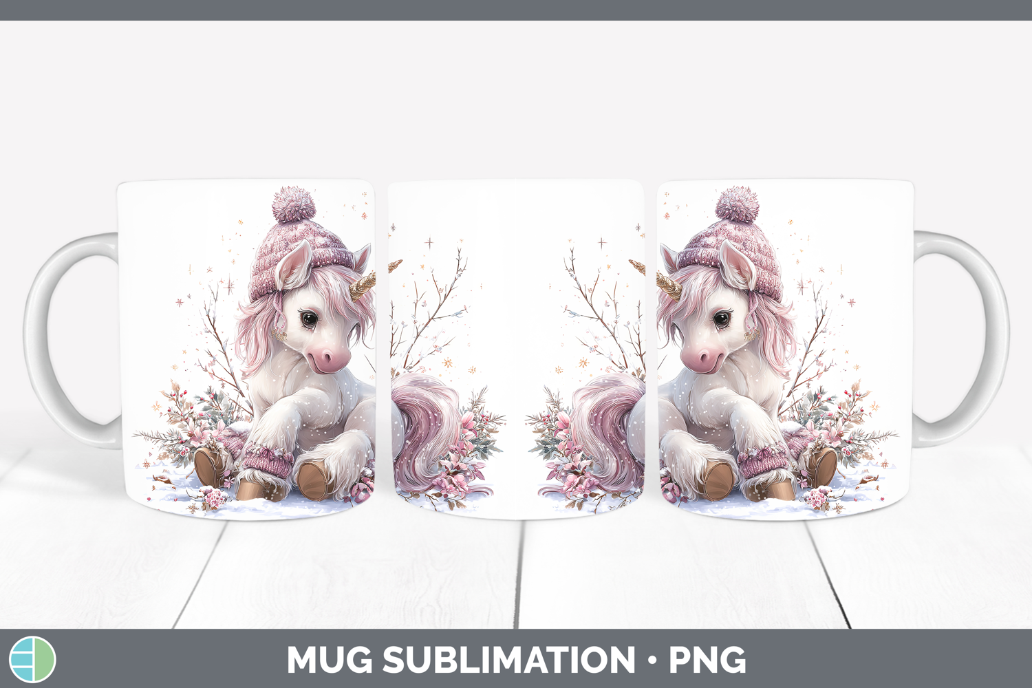 Unicorn Animals Winter Knit Hat Mug Wrap Sublimation Design